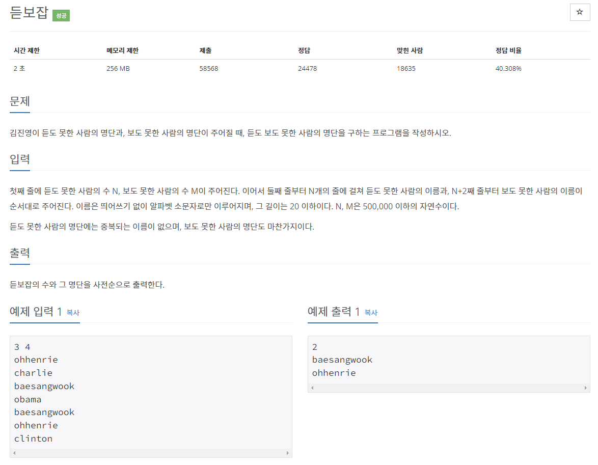 이 문제는 미리 입력받은 문자열 리스트에 나중에 입력한 문자열이 있는지 확인하는 문제이다.