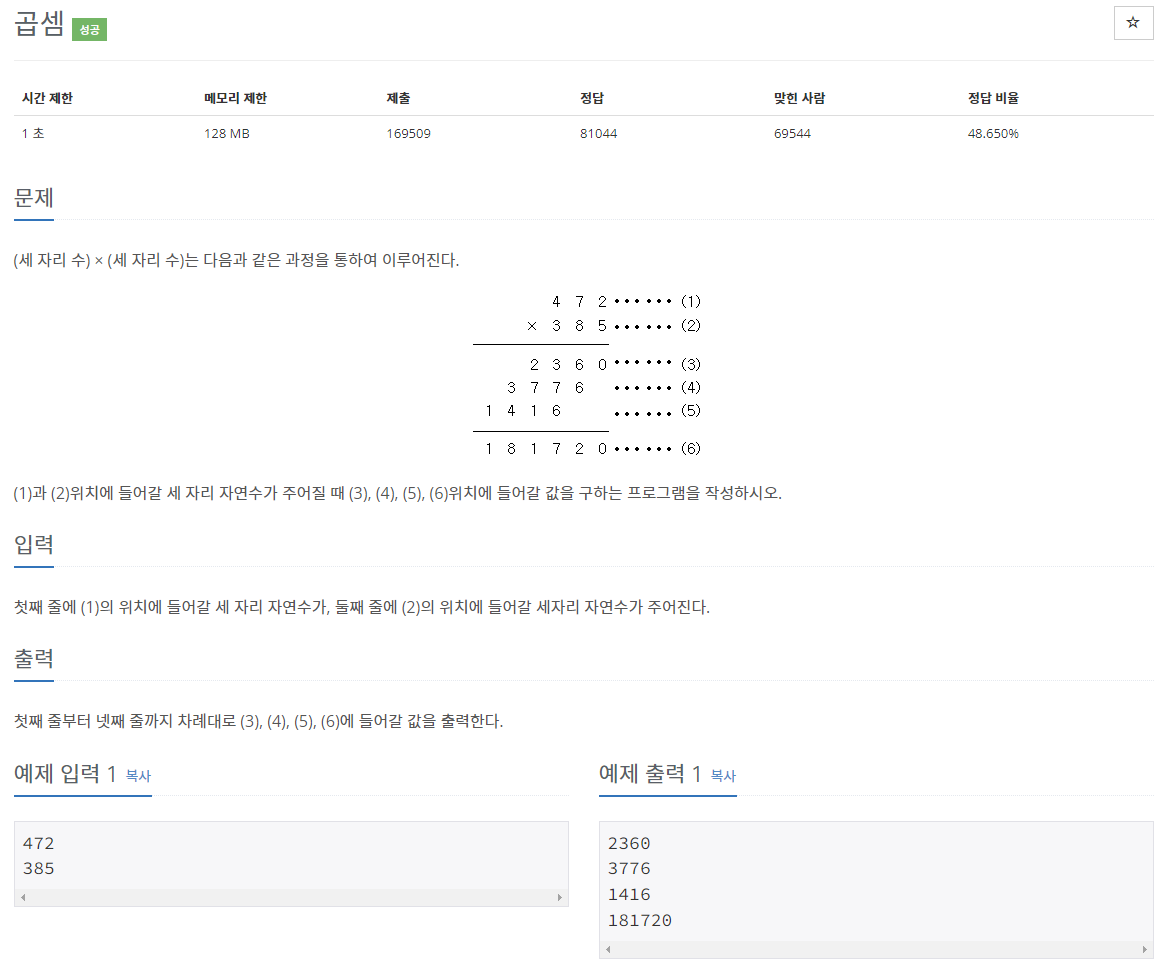 곱셈을 구하는 문제였는데 각 자리수별로 곱하기의 과정을 구해서 총 합을 구하는 문제이다.